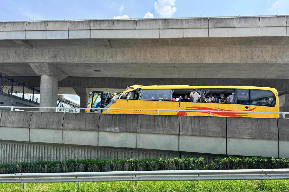 香園圍口岸發生交通意外。今日(30日)中午約12時許,一輛黃色旅遊巴駛至香園圍邊境管制站公眾停車場行車天橋附近,懷疑因為入錯線,駛入限制高度過低的線路,導致車身撞向行車天橋的底部,車頭頂部嚴重損毀。