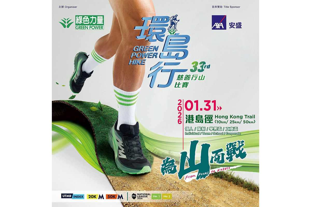 由綠色力量主辦的年度慈善行山盛事「第三十三屆綠色力量環島行」將於2026年1月31日(星期六)舉行。除了個人及隊制的50公里、25公里及10公里實事外,今屆更首設「學界盃」,並設有六大「工商盃賽」,邀請學界與商界精英,與廣大行山愛好者一同挑戰自我,享受港島徑生態綠行之樂;同時為綠色力量籌款,支持本地環境教育和生態保育工作。活動已接受報名,於11月14日前報名更可享早鳥優惠,名額有限,先到先得。