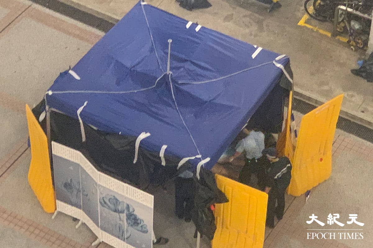 廣禮樓鄰近宏福苑火場,在附近的警員趕至現場,以帳篷等物件遮掩遺體。警方正調查事主身份及其墮樓原因,初步相信事主居於上址,案件列作「有人從高處墮下」跟進。