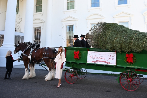 據白宮新聞稿,11月24日,美國第一夫人梅拉尼婭接收了來自密歇根州科爾森樹木農場(Korson’s Tree Farms)的白冷杉(white fir);12月1日,她揭曉了2025年白宮的聖誕裝飾,今年裝飾的主題是「家是心之所在」(Home Is Where the Heart Is)。