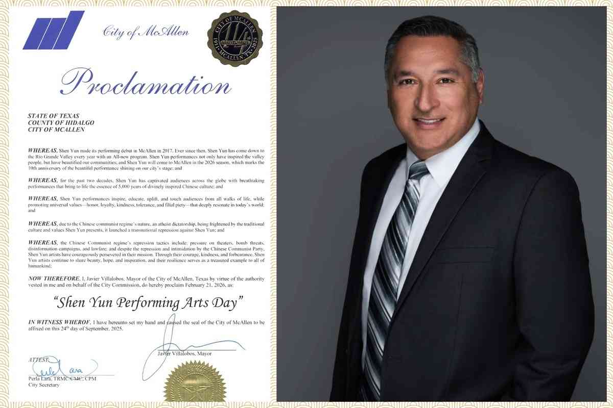 麥卡倫市市長維拉洛博斯(Javier Villalobos)回顧道,神韻於2017年首度在該市登台,此後每年皆攜全新節目蒞臨里奧格蘭德河谷(Rio Grande Valley)。他強調:「神韻演出不僅激勵河谷居民,更為社區增添光彩;神韻將於2026年演出季重返麥卡倫,屆時將是這台精彩演出在本市舞台綻放10周年。」
