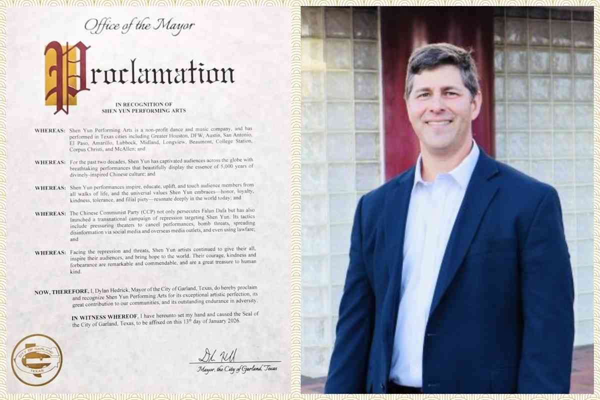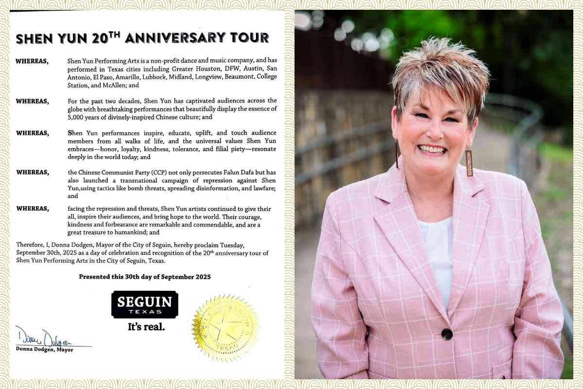 神韻藝術團即將在2026演出季中,迎來巡迴演出20周年。美國德薩斯州繼六城市嘉獎神韻後,又有埃爾帕索市(El Paso)、加蘭市(Garland)、麥卡倫市(McAllen)、朗維尤市(Longview)、塞金市(Seguin)和伯尼市(Boerne)六座城市的市長,代表市議會向神韻致贈褒獎。