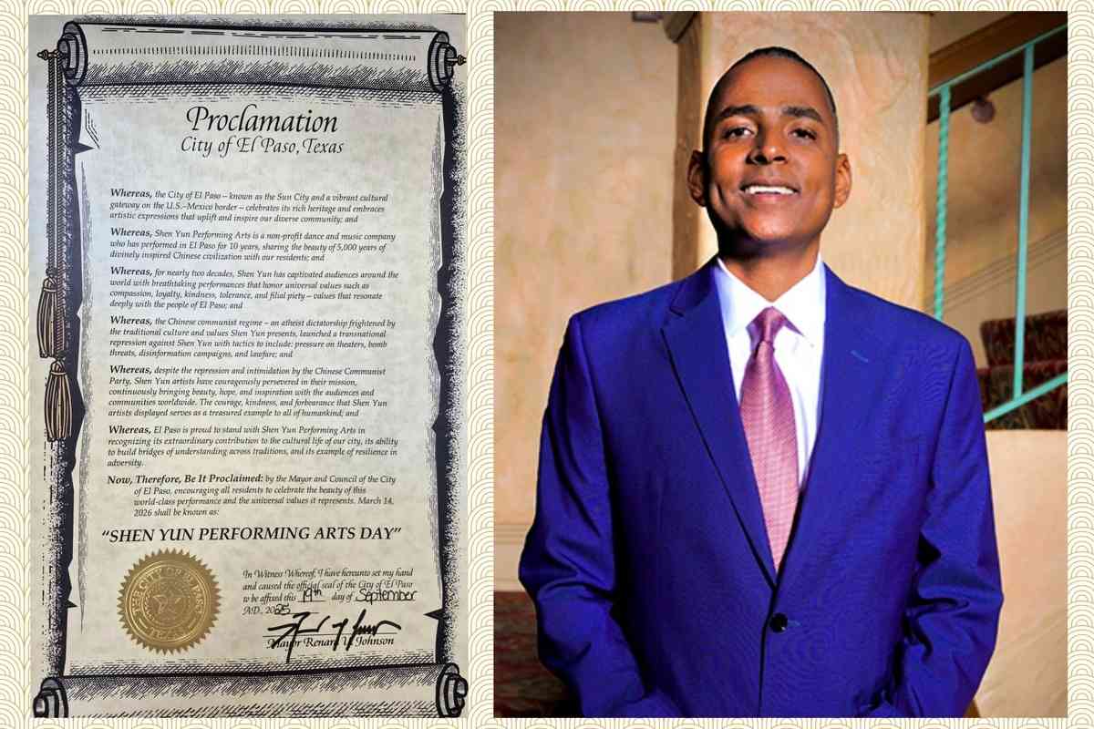 「埃爾帕索市很榮幸與神韻藝術團體攜手,表彰其對本市文化生活的非凡貢獻、跨越傳統架起理解之橋的能力,以及逆境中展現的韌性典範。」強森與市議會宣告,「鼓勵全體市民共慶這台世界頂級演出所展現的藝術之美,及其承載的普世價值」;並將2026年3月14日定為「神韻日」(Shen Yun Performing Arts Day)。