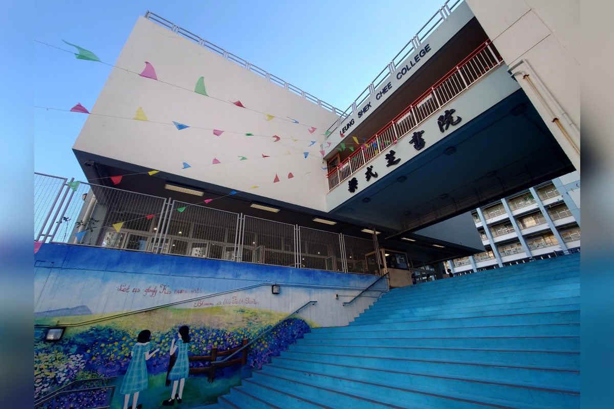梁式芝書院位於秀茂坪曉光街,與前期介紹的香港聖公會何明華會督中學只是一牆之隔,與上期介紹的香港道教聯合會青松中學亦只是一街之隔,三所學校連成一塊,當中以今期介紹的梁式芝書院最早落成開學。