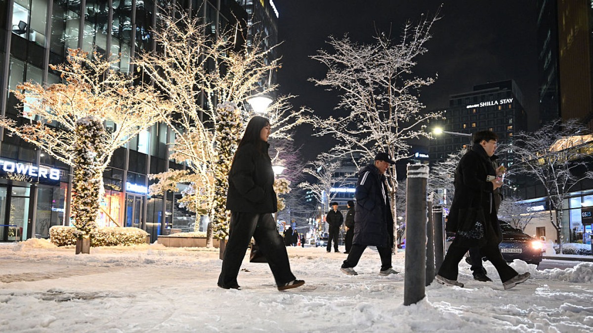由於路面結冰相當濕滑,讓行人道險象環生,在西大門站附近等公車的上班族金某表示,「來搭公車的路是下坡、非常滑,明明只要走2分鐘的距離,也走得很吃力。」