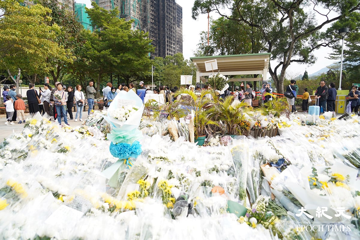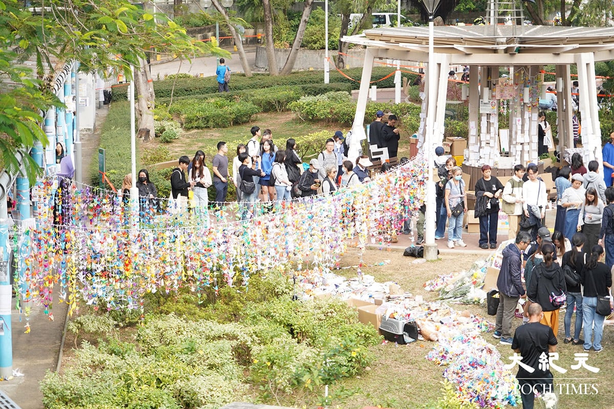 宏福苑於11月26日發生5級火災,造成159人死亡。自事故發生後,鄰近的廣福休憩處,一直有市民前往悼念。涼亭位置有一批義工駐守,設留言區,提供紙筆讓市民抒發感受。昨日(6日)現場出現告示,表示該處悼念活動將於今日深夜結束,大批市民把握最後機會獻花。