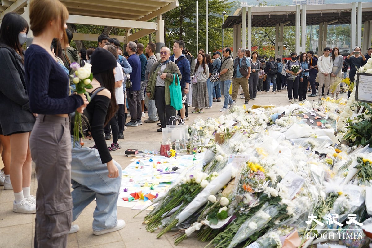 昨日有多名市民獻花、寫留言、摺紙鶴等。有中六學生稱,雖然學業較繁重,但覺得有些事情比讀書更重要、更有意義」。亦有不少長者從藍田、將軍澳等遠道而來,甚至有人坐輪椅,只為悼念死者,義工稱反映香港社會「好有愛、好有人情味」。@