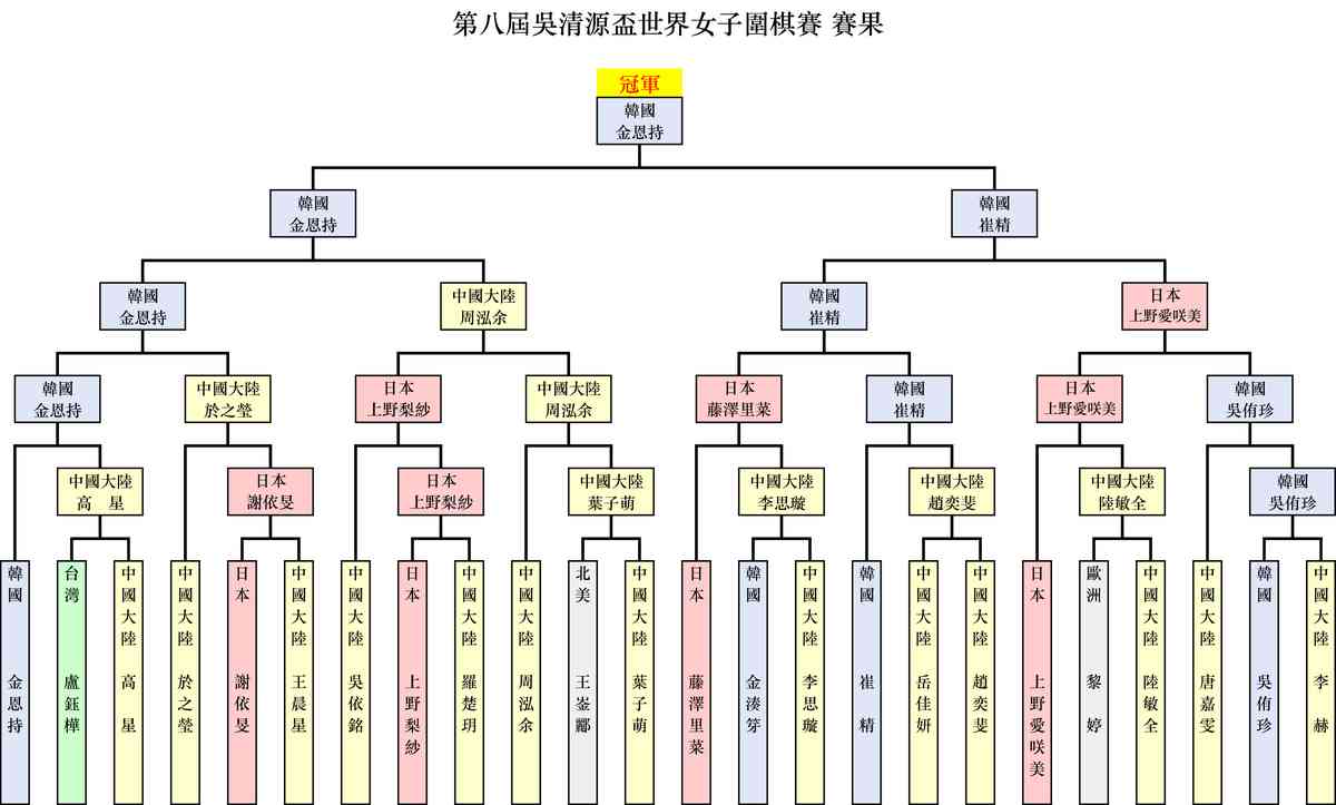 12月9日,第八屆「吳清源盃」世界女子圍棋公開賽三番棋決賽結束,18歲的韓國天才少女金恩持九段在決勝局完勝三屆冠軍得主崔精九段,從而以2比1的總比分,加冕自己首個女子世界冠軍。