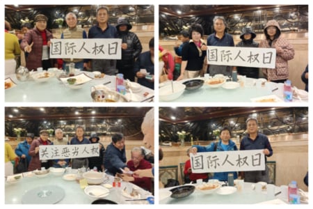 12月10日是國際人權日,這天適逢上海信訪辦每周三的上訪日,各區訪民在信訪登記後都會到信訪辦後門對面的公園聚會,中午聚餐成為一種習慣。用餐當時,訪民們臨時決定拉橫額來紀念這個日子,於是他們拉著「國際人權日」「關注惡劣人權」直幡拍照,並將照片上傳互聯網。