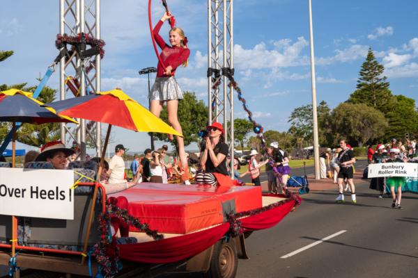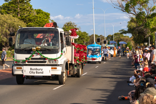 2025年12月14日,澳洲西澳州珀斯市部份法輪功學員參加了西澳南部城市班伯里(Bunbury)市的聖誕遊行。圖為其他團體的遊行隊伍。(周鑫/大紀元)