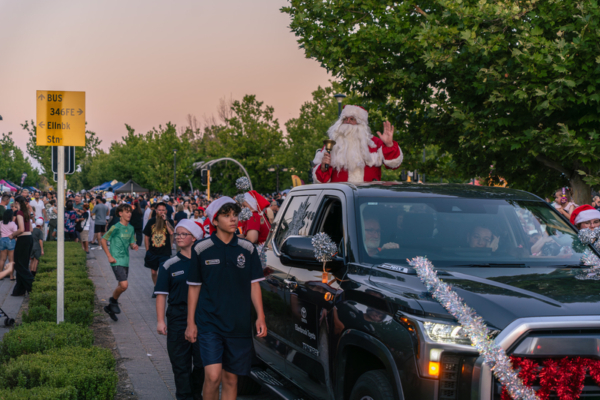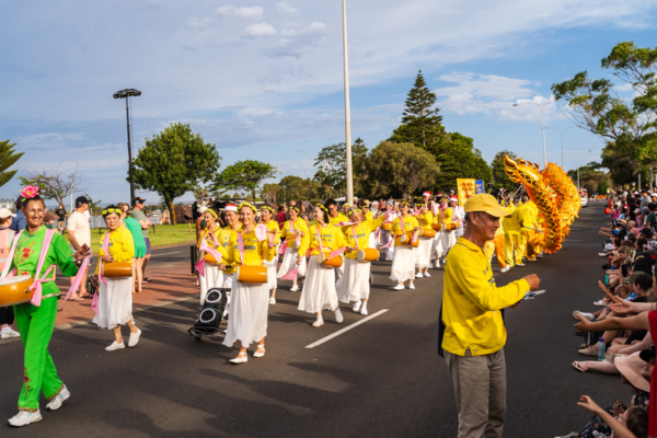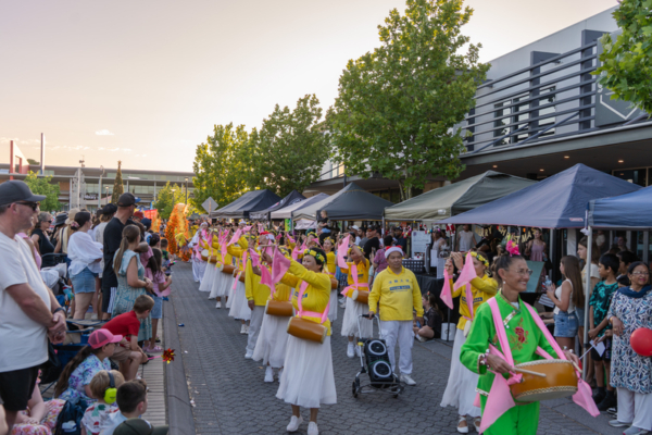 2025年12月13日,澳洲西澳州珀斯市部份法輪功學員參加了珀斯東北部的艾倫布魯克(Ellenbrook)區的聖誕節慶活動。圖為其他團體的遊行隊伍。(周鑫/大紀元)