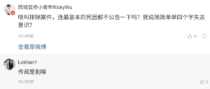 呂品的死因在網上引發議論。「甚麼叫排除案件,連最基本的死因都不公告一下嗎?就說簡簡單單四個字失去意識?」「傳聞是割喉。」