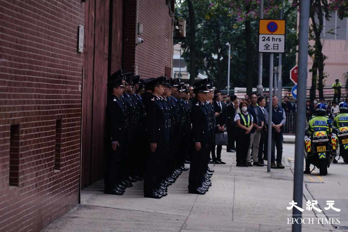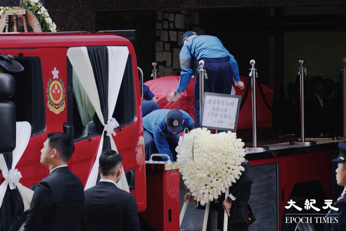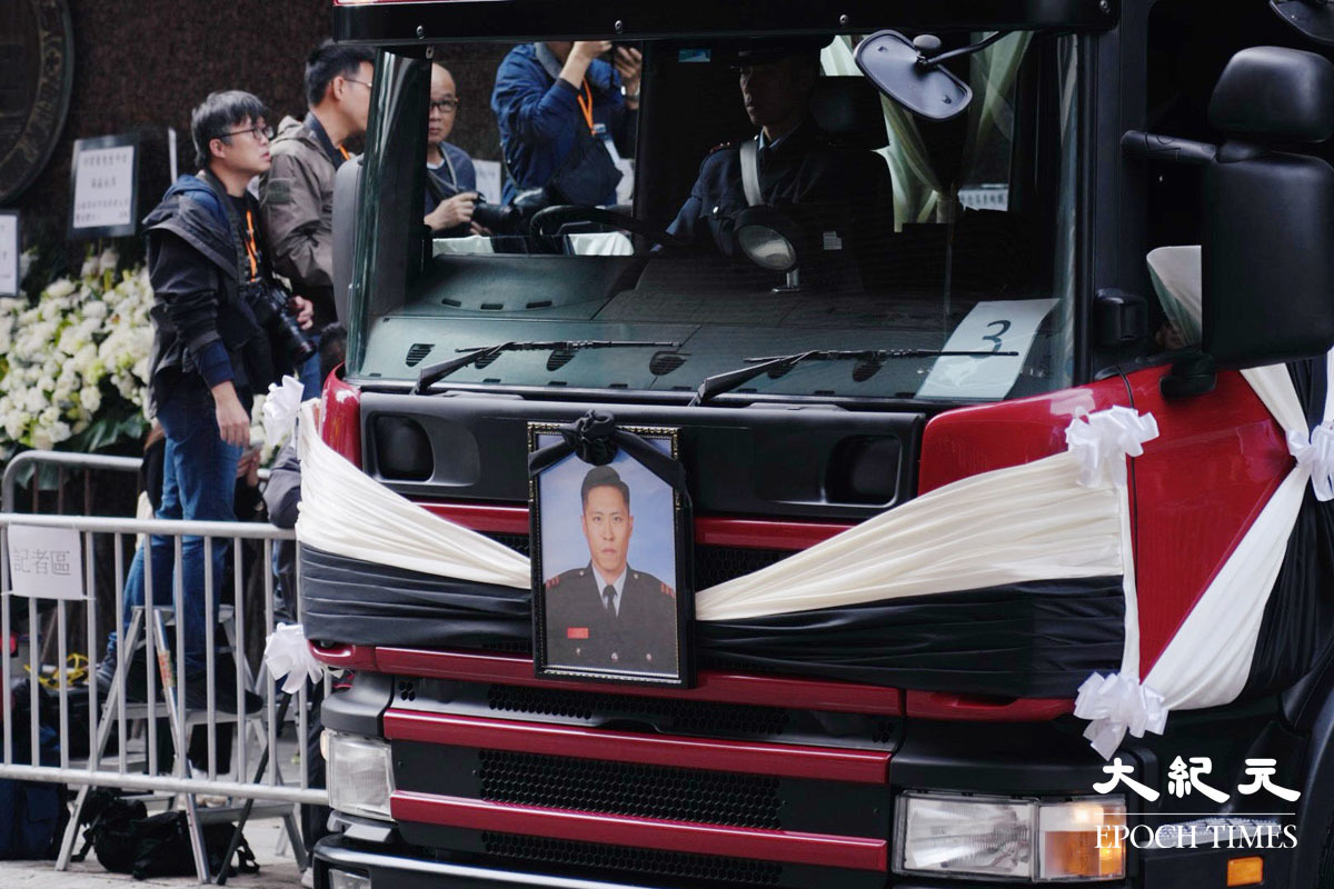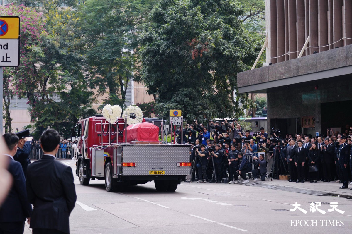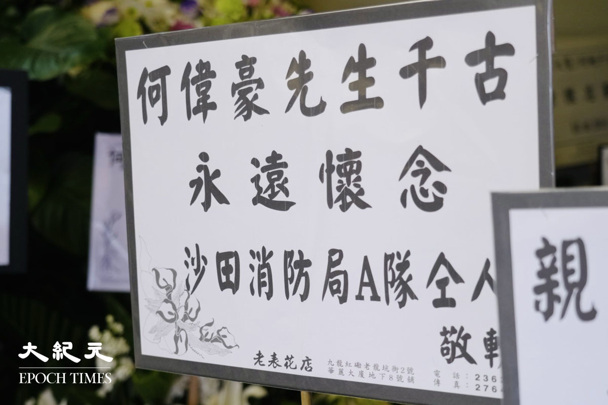 在大埔宏福苑火災中殉職的消防員何偉豪,消防處今日在九龍紅磡世界殯儀館為他舉行最高榮譽喪禮。