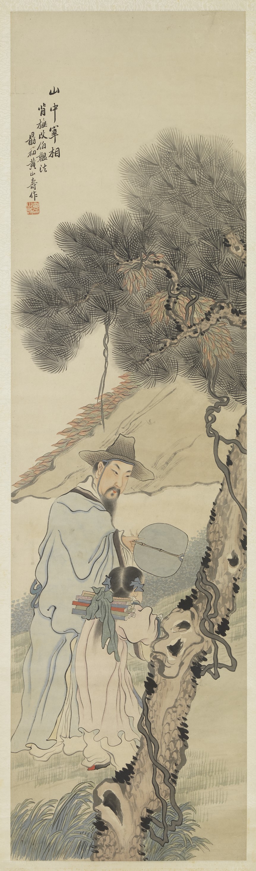 陶弘景隱居句曲山,武帝遇有國家大事,經常前往諮詢請教,時人稱之為「 山中宰相 」。民國黃山壽人物四屏軸 山中宰相(國立故宮博物院提供)