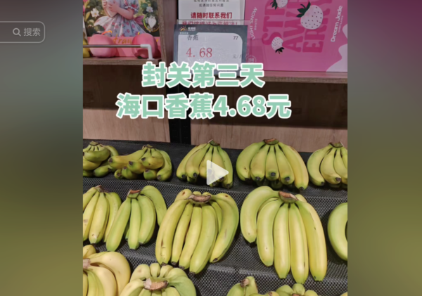 20日,有博主拍影片說,封關第三天,海口香蕉4.68元/斤,內地香蕉僅1.68元/斤。