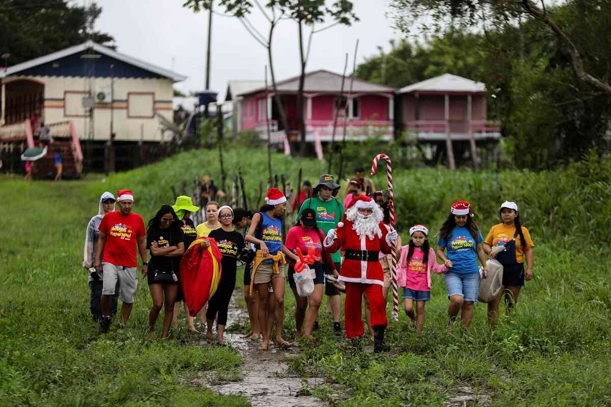 該活動是由巴西慈善團隊Friends of Santa Claus主辦,該機構自1998年以來,每年都會在聖誕節前夕,安排穿上傳統聖誕服裝的聖誕老人,在一群志願者的協助下,為亞馬遜雨林農村社區的兒童派發聖誕禮物。