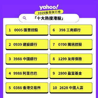 隨著2025年接近尾聲,Yahoo香港公布本年度「Yahoo全年搜尋人氣榜」,回顧一年來最受關注的人物、事件與投資標的。其中,「十大熱搜港股」及「十大熱搜美股」榜單,清楚反映投資者情緒、政策變化及全球資本市場的關鍵主線,成為觀察年度市場風向的重要指標。