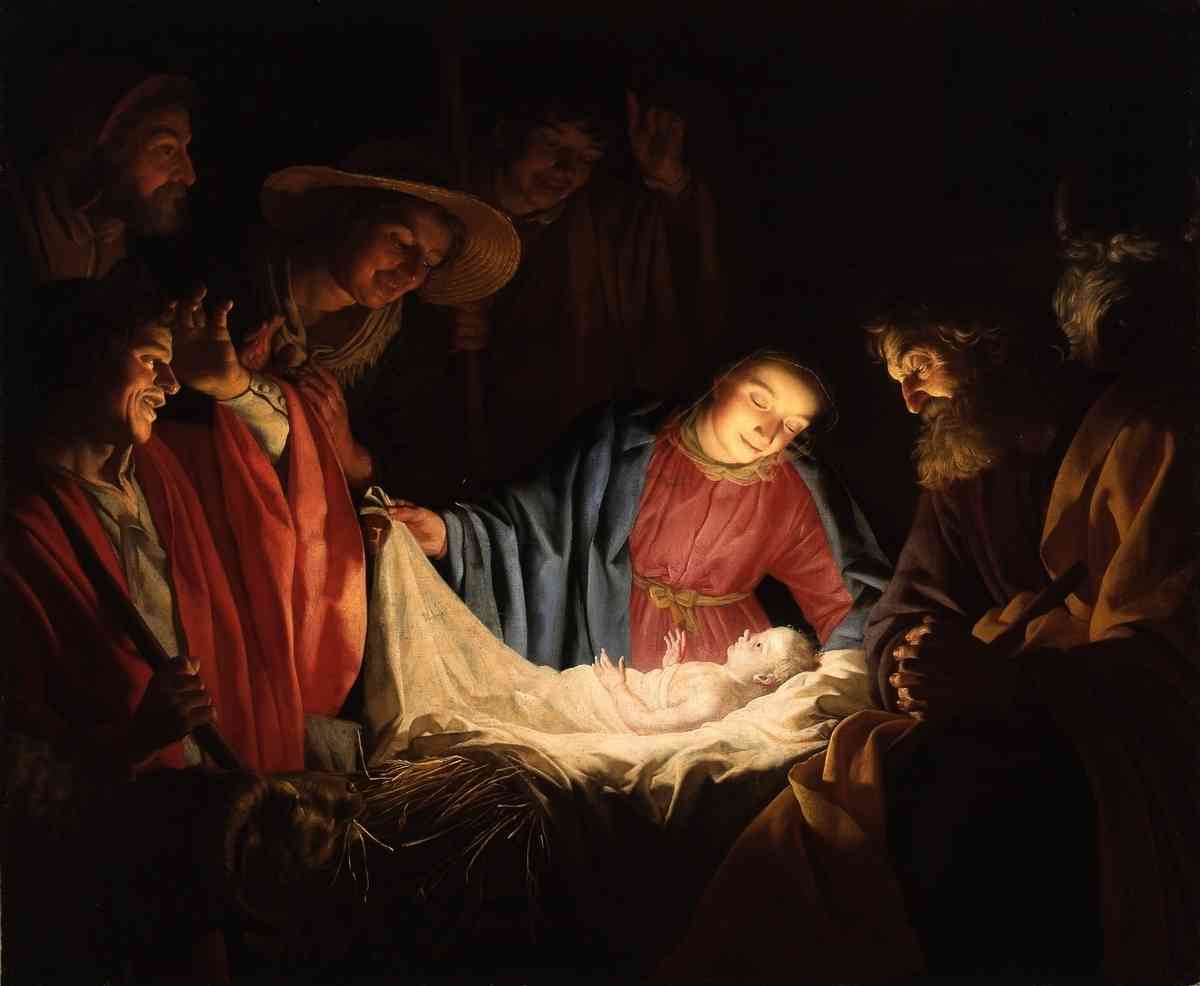 德國畫家傑拉‧范‧洪多斯特(Gerard van Honthorst,1590–1656年)於1622所作的《牧羊人的朝拜》(Adoration of the Shepherds),將光線集中在聖嬰身上,聖嬰成為光源,代表著他的神聖與非凡,當然也是眾人的注目焦點。在黑暗的環境中,神的光明是指引方向的明燈,當然也預示了時代的昏暗,耶穌未來傳道救世的路途是艱巨的。