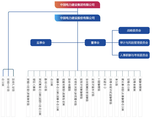 中國電建設集團有限公司和中國電力建設股份有限公司的關係與公司組織架構圖。(網絡截圖)