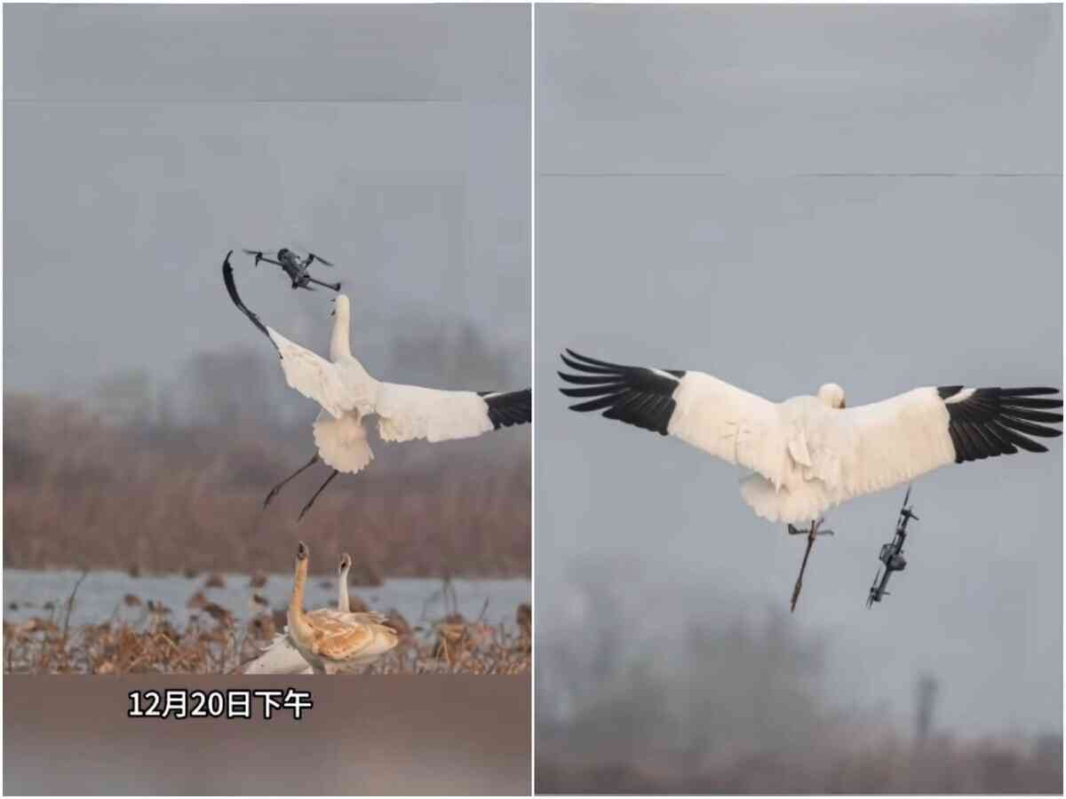 近日,有網民發帖稱,在杭州餘杭南湖公園觀鳥時,目睹無人機近距離拍攝野生白鶴。由於無人機不斷靠近,白鶴憤而騰空將無人機踢入藕塘,引發熱議。