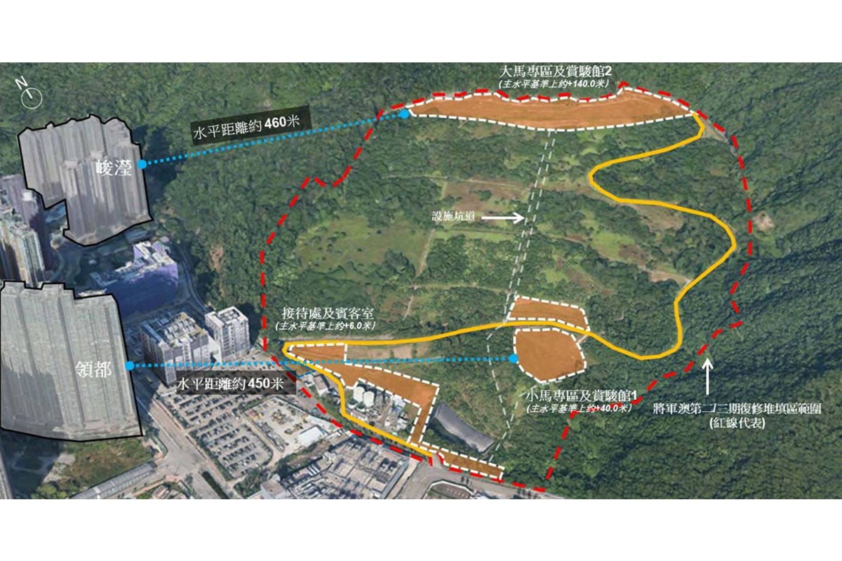 文件指,該堆填區沿斜坡佔地約46,500平方米,設計將結合了3個主體平台,主要騎術設施、工作區域及校舍皆位於該3個平台上,與周邊環境融為一體。