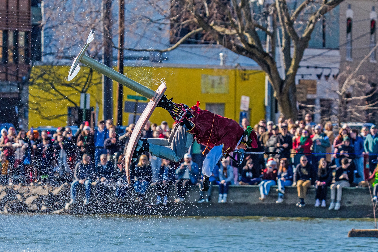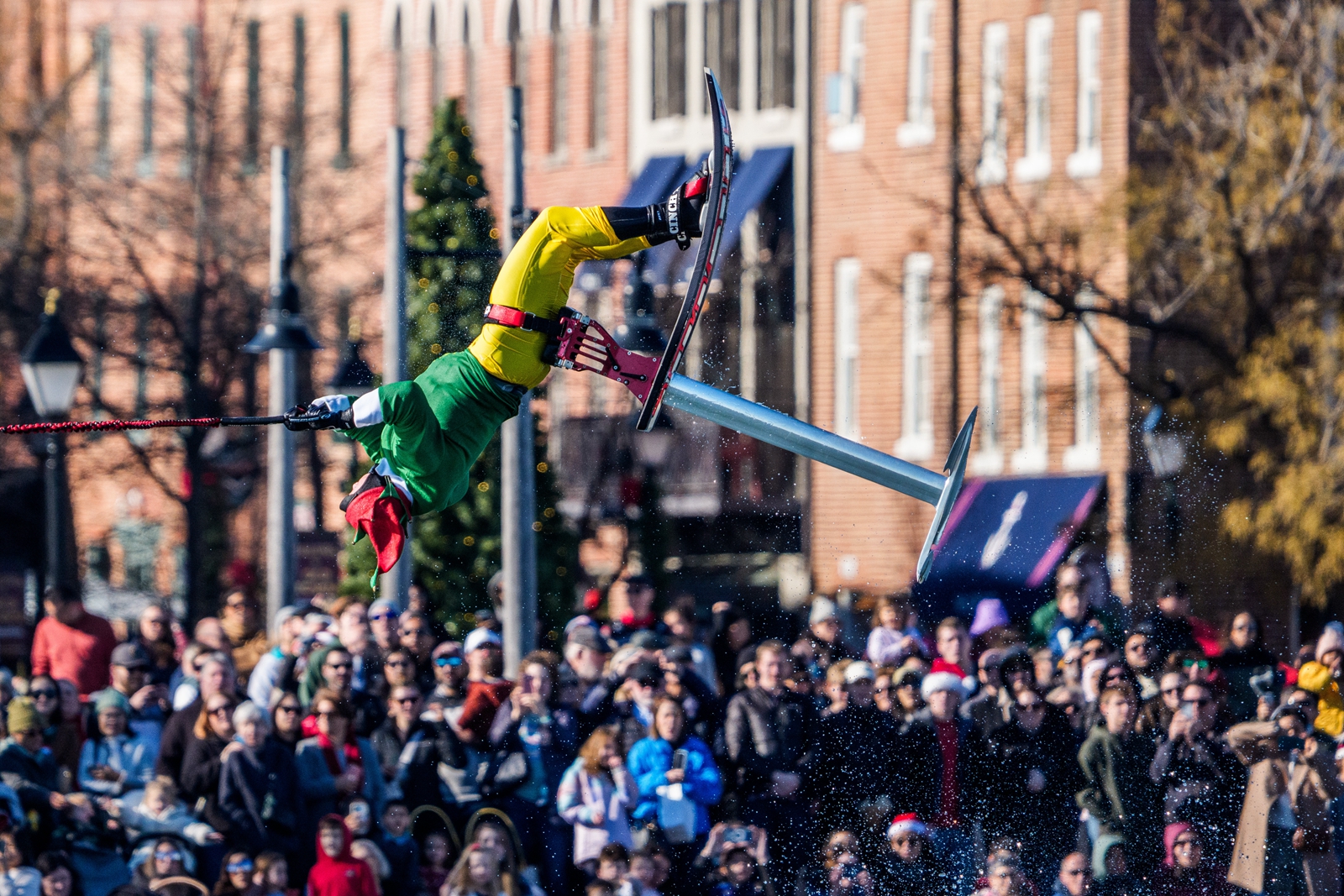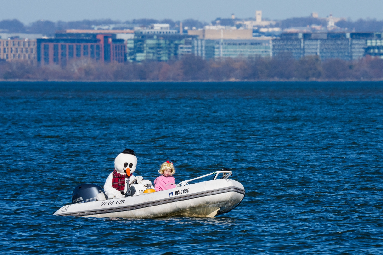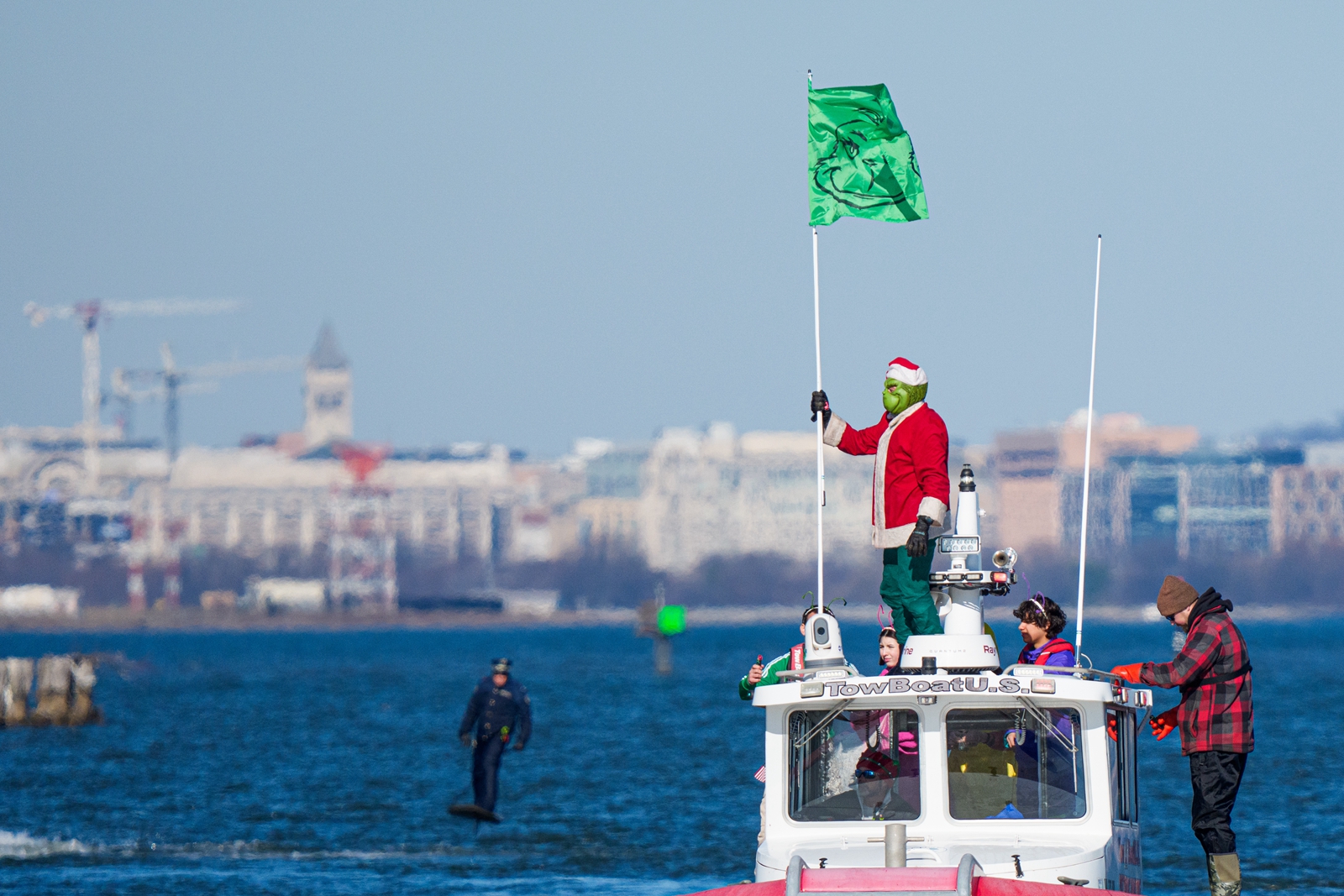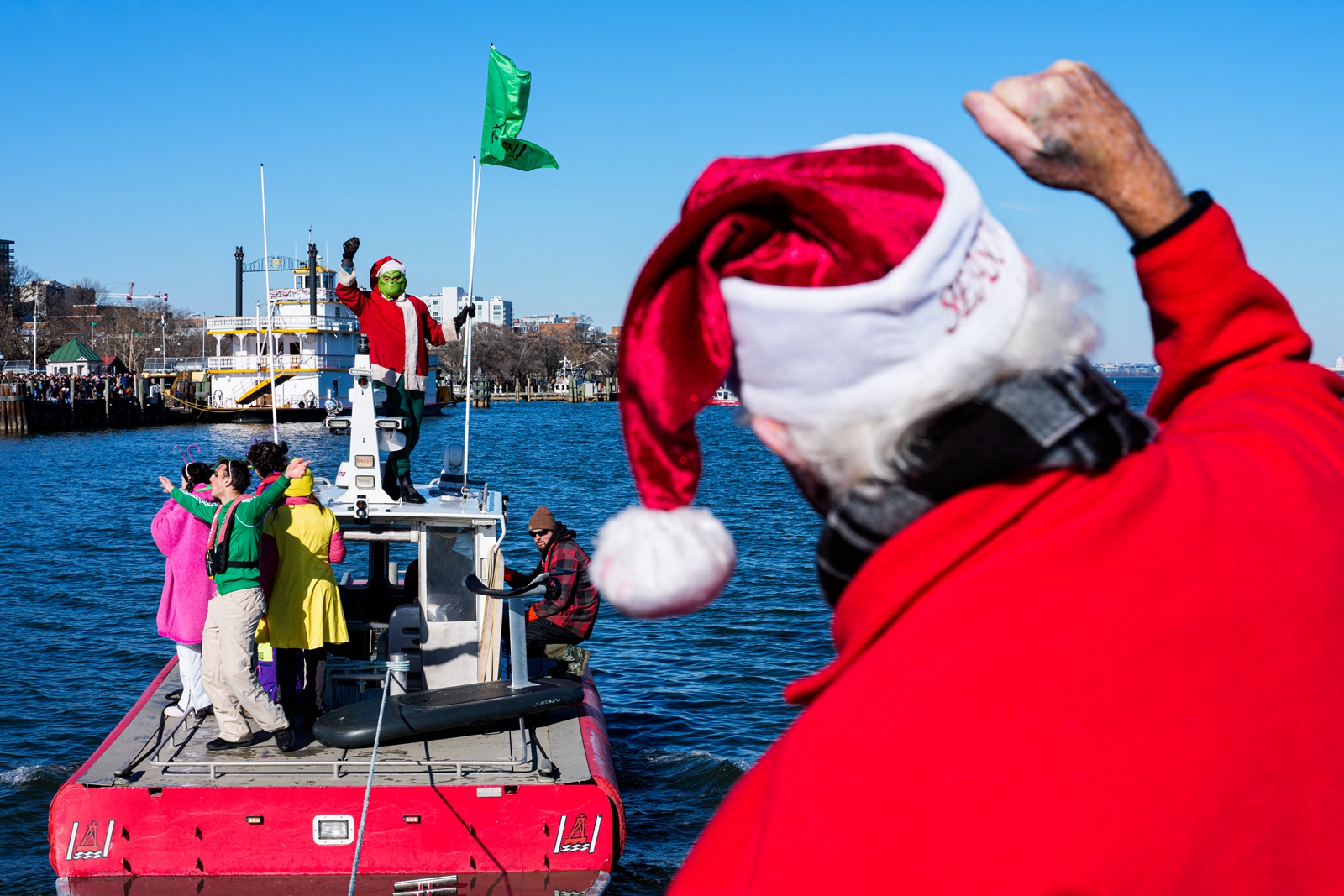 當天下午,人群聚集在亞歷山大老城(Alexandria Old Town)的波托馬克河(Potomac)岸邊,大家都翹首以待。終於,聖誕老人帶著他的馴鹿和小精靈們出現了,其中還混跡著一個專門搞破壞的綠毛怪格林奇。
