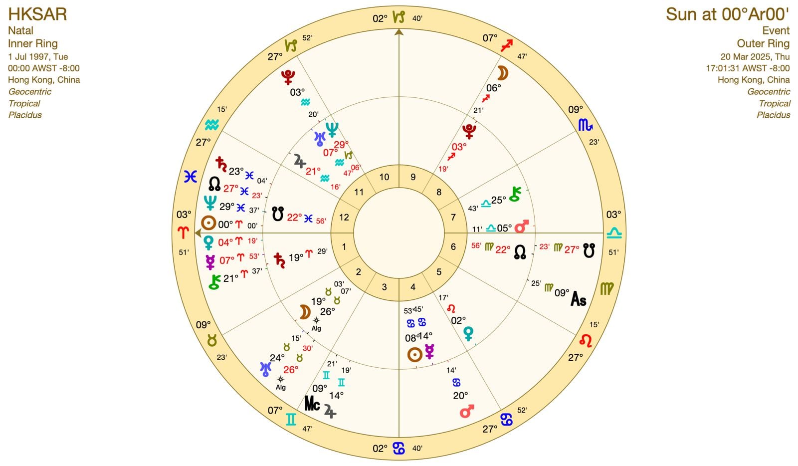 以春分盤觀之,香港與中國所面對的整體結構性問題高度相似。