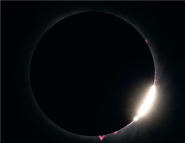 這是2024年4月8日在德州達拉斯拍攝的日全食照片。在日全食過後,月亮遮蔽了太陽的耀眼光芒,使人們得以對日冕一窺究竟。科學家可趁機沿著全食帶收集資料,以幫助研究人員研究日冕最內層——僅在日全食期間可見的部份。