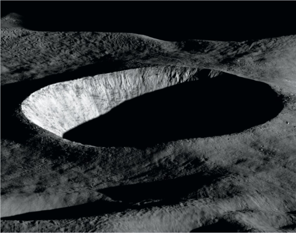 這張圖片由NASA的月球勘測軌道飛行器相機(LROC)於2023年8月30日拍攝。它呈現清晨的陽光照亮了這個無名隕石坑的西壁,在地面和內部投下深深的陰影。