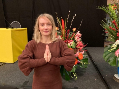 「祝師父新年快樂!」來自德國北威州的法輪功學員Eva-Marie Schiffer說,「我願更加努力,全心全意地提升自己,更加關注細節。」「每一個小小的煩惱,或是探究我們為何覺得某件事奇怪,為何行不通。通過這樣做,道路將會開啟,更多的機會將會顯現在我們面前。我祈願師父,希望我們能夠做到這一點,祝所有同修能做到這一點。我也非常渴望自己能夠做到這一點。」