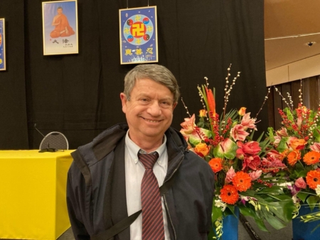 年過六旬的Boris Suchin二十多年前開始修煉法輪大法。他來自俄羅斯,在柏林生活多年,不善言語的他也表達了對李洪志師父的感恩。