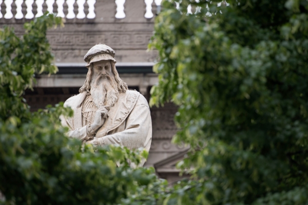 位於米蘭的一座達文西塑像,作者是意大利雕塑家彼得羅‧瑪尼(Pietro Magni)。(Miguel Medina/AFP/Getty Images)