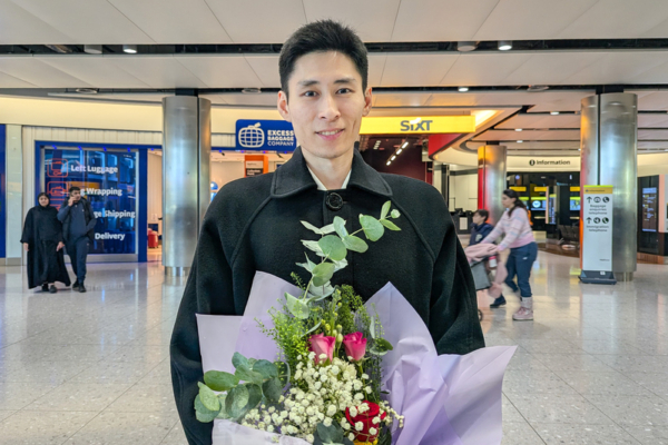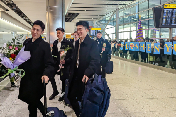 當天上午9點30分許,神韻藝術家們帶著燦爛的笑容、邁著輕盈的步伐走出機場大廳,迎面而來的,是英國粉絲們欣喜而熱情的歡呼:「我愛神韻!」「歡迎神韻蒞臨英國!」溫暖的冬日陽光透過機場大廳的玻璃窗,映襯著藝術家們朝氣蓬勃的身影,讓人期待著他們在新的演季會帶來怎樣的驚喜和感動。
