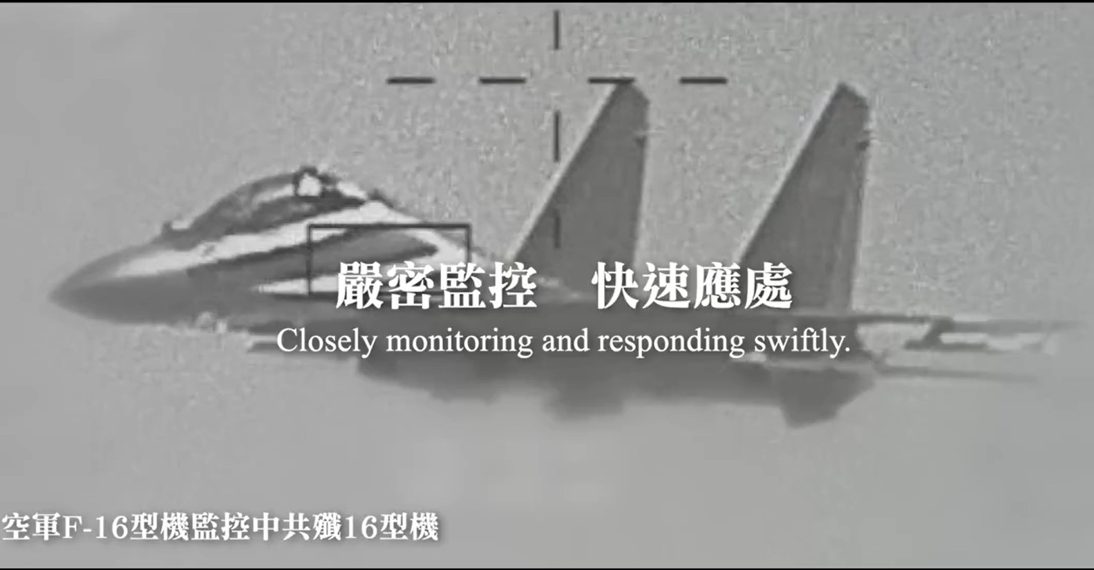中共發出演習的影片大多是以往畫面的剪輯。台灣軍方則很快發出現場片段《鎮定以對 從容自若》,首次曝光中共多種軍機被鎖定。