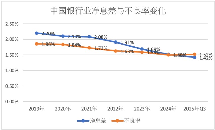 1.8%被業界視為淨息差的「安全警戒線」或「審慎值」,低於此水平代表銀行的盈利能力承壓,具有潛在經營風險。中國銀行業平均淨息差低於警戒線,表明其資產端貸款利率下行過快,而負債端存款成本則處於剛性。這導致整個行業盈利空間壓縮,內生資本補充難,需外部注資渡過難關。