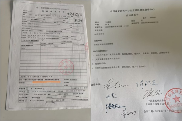 北京昌平劉燕玲也是疫苗受害人,於2021年接種了北京科興新冠疫苗,一周後發病,診斷為漸凍症。病情發展至今已出現四肢無力,生活不能自理。劉燕玲走遍了北京頂級醫院,專家同樣不敢說與疫苗有關。