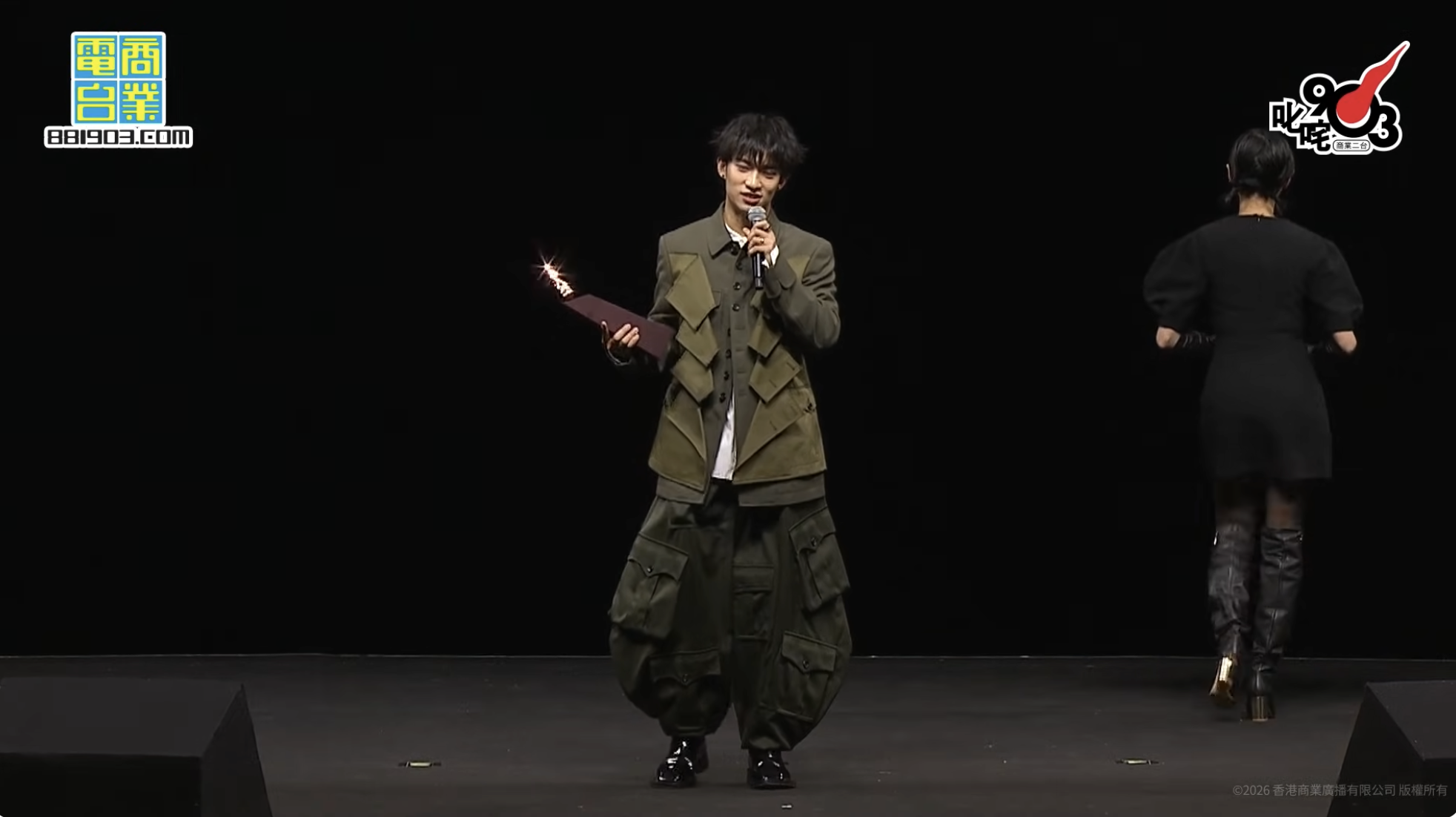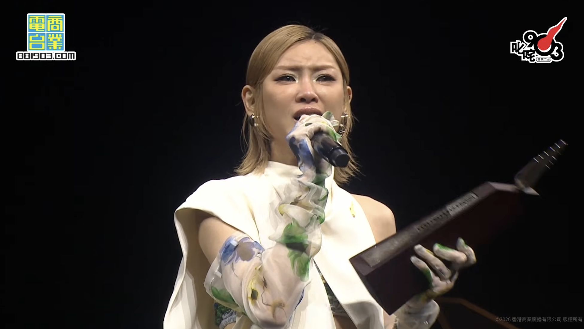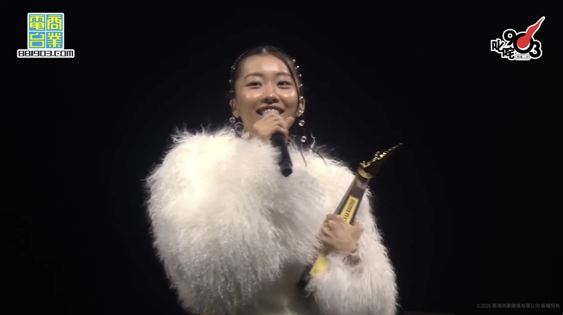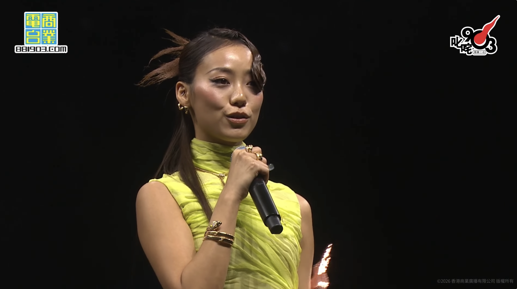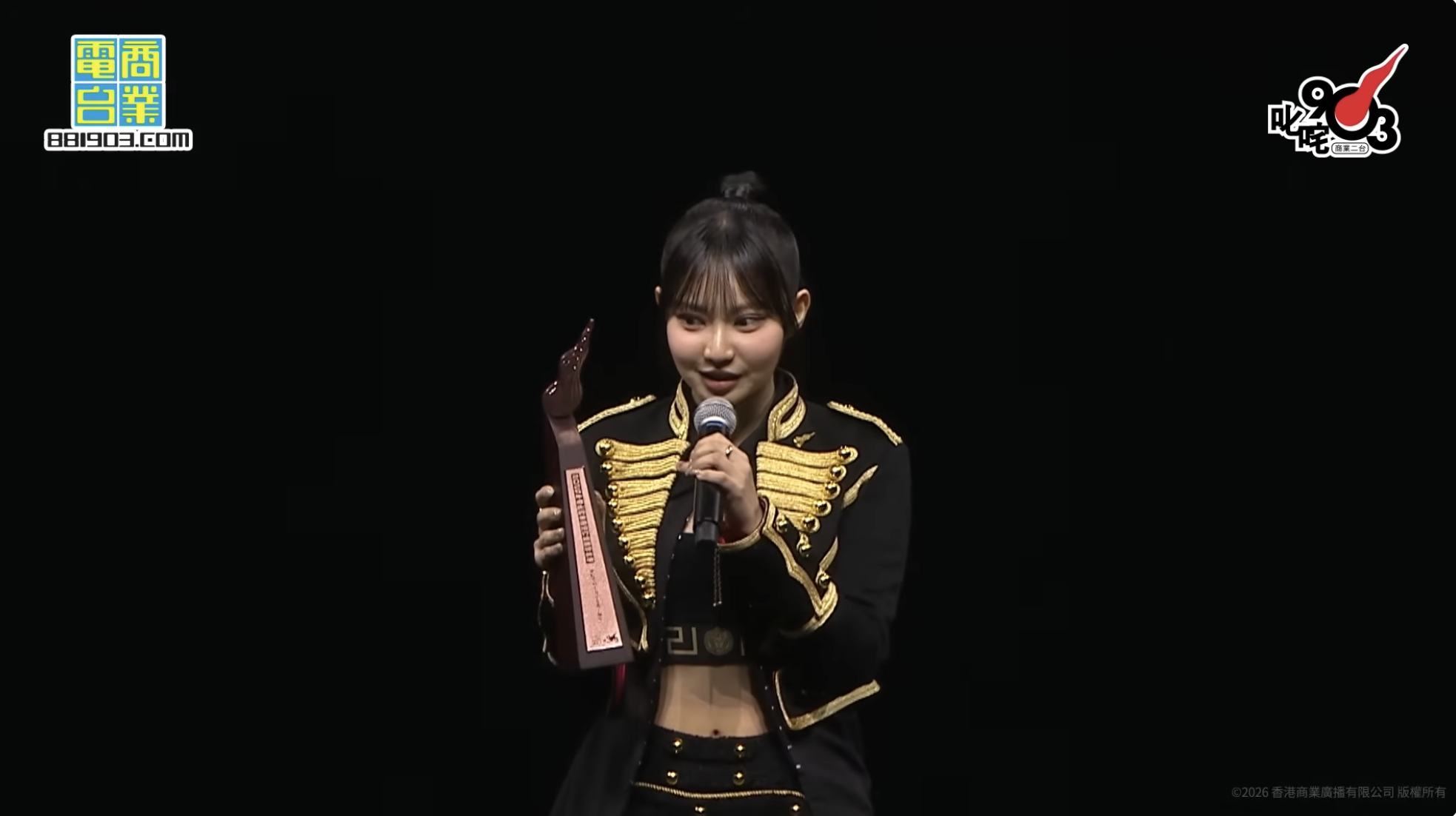 鄧麗欣上台領獎時,第一句感言是「我同自己講係唔可以喊嘅」,她說自己23年首次踏上叱咤頒獎台,當時獲新人獎,走下頒獎台後覺得離這個台好遠,「唔知幾時可以上返嚟呢個台攞獎」。