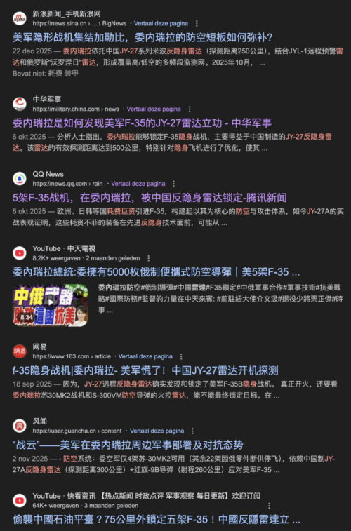 2025年10月,多家中共媒體曾援引委內瑞拉軍方的說法稱,該國雷達系統成功發現美軍F-35、F-22隱身戰機蹤跡,並將其歸功於中國產JY-27雷達的技術優勢。