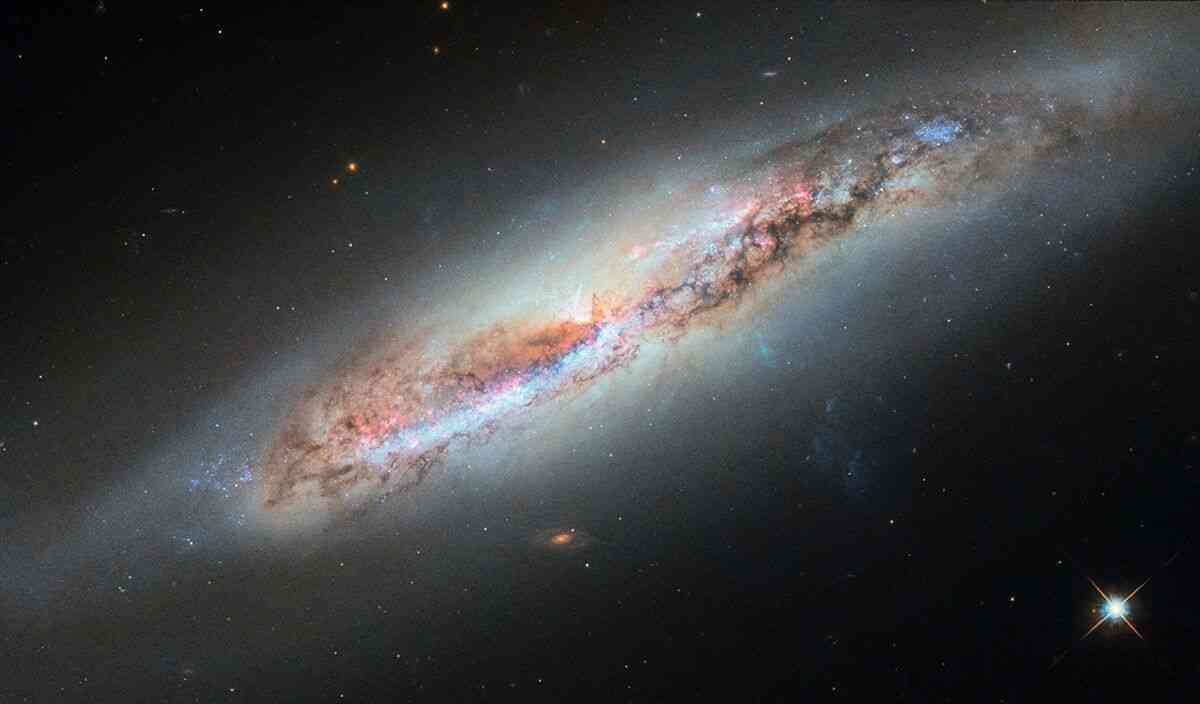 美國太空總署(NASA)的哈伯太空望遠鏡(Hubble Space Telescope)拍攝到一個幾乎以側視角度呈現的螺旋星系NGC 4388。該星系擁有能量充沛的明亮核心,而且有一股氣體從核心中噴出。