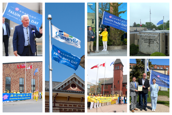 在加拿大,10個城市升旗,慶賀世界法輪大法日。