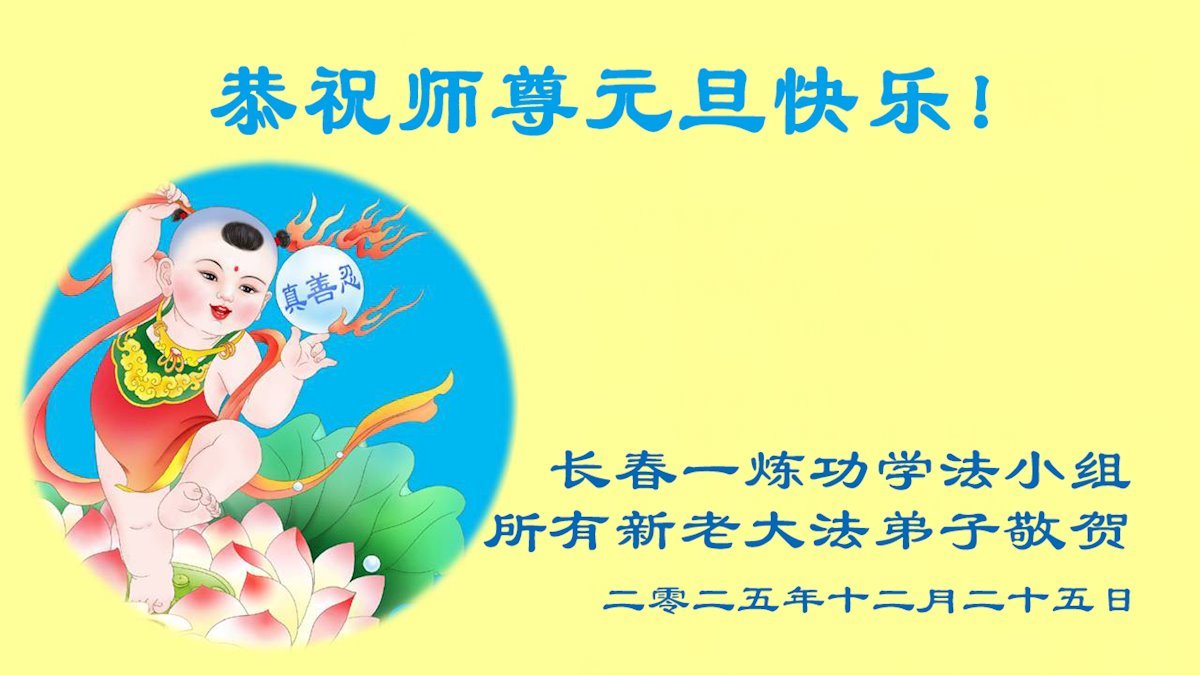 他們寫道:「恭祝師父元旦新年快樂!感恩師父慈悲救度!在新的一年裏,弟子要學好法,切記向內找是法寶,快去人心、執著,修好自己,讓師父少為弟子操勞,多有一些欣慰,兌現誓約,完成使命,跟師父回家!」