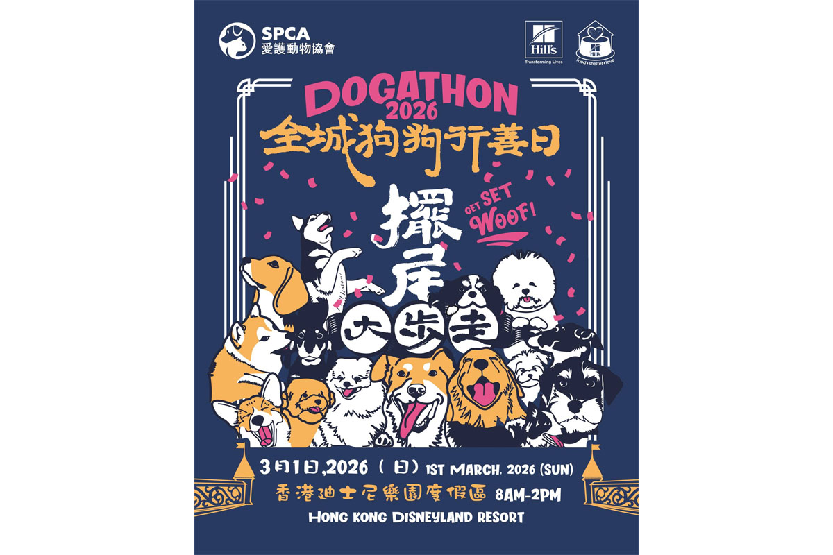 愛護動物協會將於3月1日在迪士尼樂園度假區舉行「全城狗狗行善日2026」,活動包括慈善步行及寵物嘉年華,預計吸引逾3千名市民及其愛犬參與,籌得善款將用於動物福利,支持拯救被遺棄或受傷的動物。港鐵公司亦宣布首度參與,將開放其鐵路網絡予符合要求的中小型狗隻搭乘。