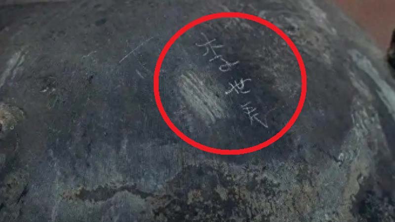從遊客晒出的圖片可見,該刻字印記較新,呈白色,在青銅器黑色表面顯得格外醒目。