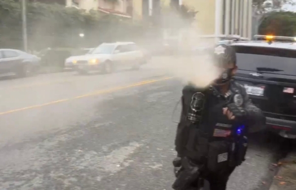 他說,首先,集會者是在街道上、行人路上,這屬於公共場地;其次,依據加州刑法,雖然允許個人合法持有胡椒噴霧,但前提是必須符合加州正當防衛的普通法標準。