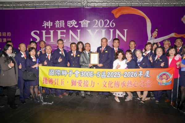 台灣國際獅子會300-E5區總監李慶春特別率領區內行政團隊、會長及獅友共140人分兩天進場觀賞神韻演出,集體以行動支持神韻藝術與文化傳承。邀請神韻來台演出的台灣法輪大法學會致贈感謝狀,表彰台灣國際獅子會300-E5區對「2026神韻晚會全台巡演20周年」的支持,並肯定其長年共振響應、推動復興正統中華文化的善舉。