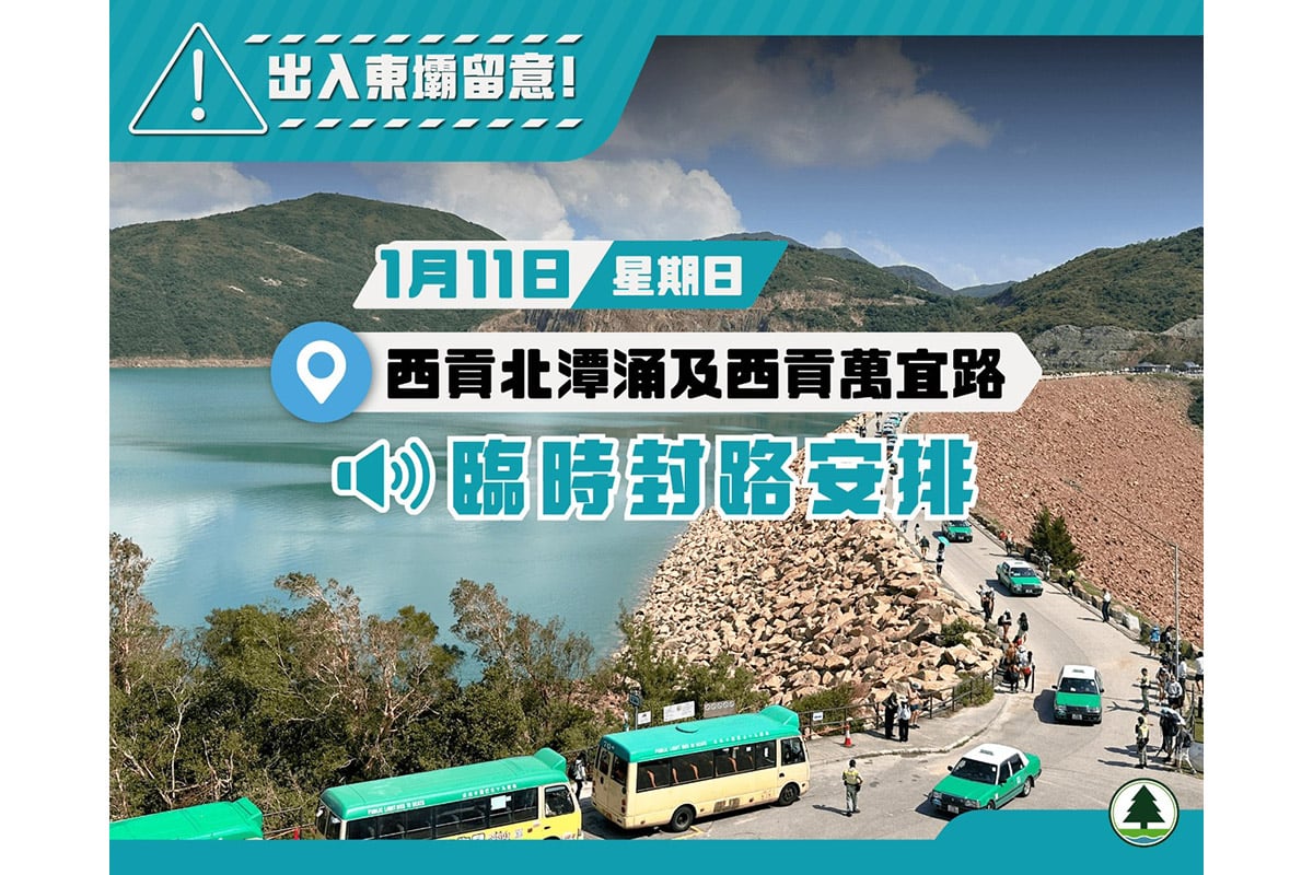 運輸署指出,公益金新鴻基地產慈善馬拉松2026,以及中國沿岸馬拉松及半馬拉松,將於周日在萬宜水庫及北潭涌郊野公園舉行。配合賽事,周六上午7時至9時30分,大網仔路介乎北潭涌傷健樂園與萬宜路之間路段,以及萬宜路與大網仔路交界起向南約4.6公里路段,將間歇封閉。