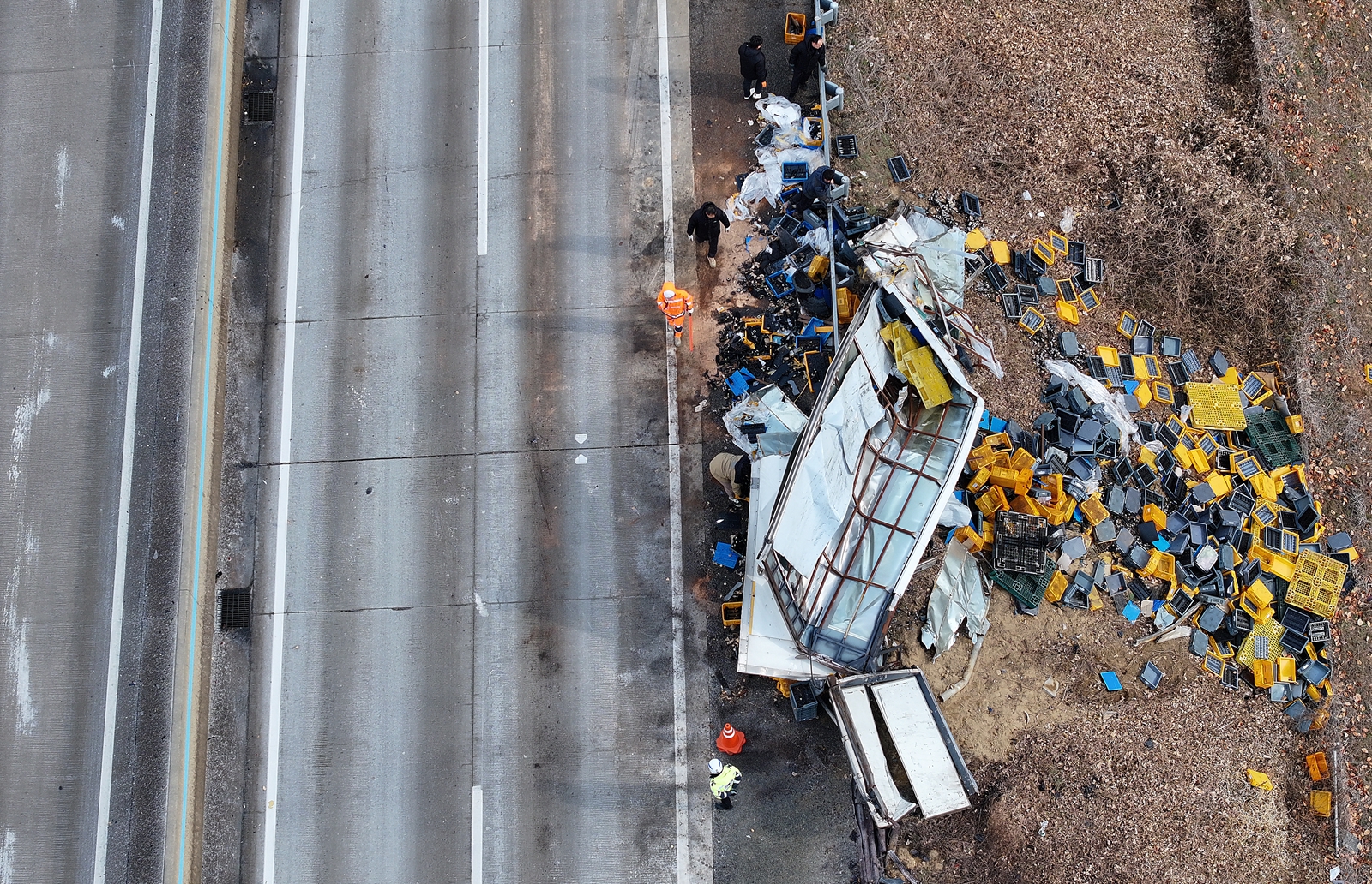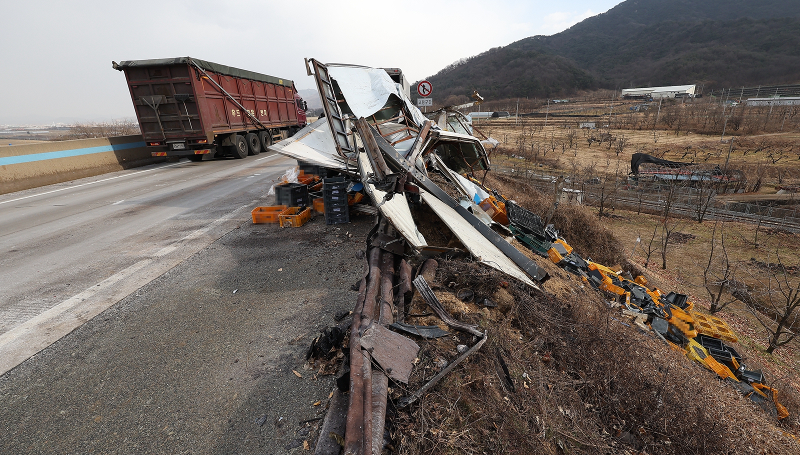 據當地媒體報道,其中一宗事故發生在早上6時20分許,地點位於南尚州交流道附近,一輛9.5噸貨車在往盈德方向行駛時,為閃避一台停在路上的車輛而撞上護欄,隨後墜落至路面下方,貨車司機當場罹難,並引發該路段連環相撞事故。