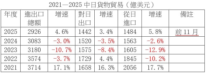 最近幾年,中日貨物貿易已呈下滑狀態(見下表)。如果中日經濟強脫鉤,對本已大盤動搖的中國經濟來說,簡直雪上加霜。這時與日交惡,實在愚蠢。