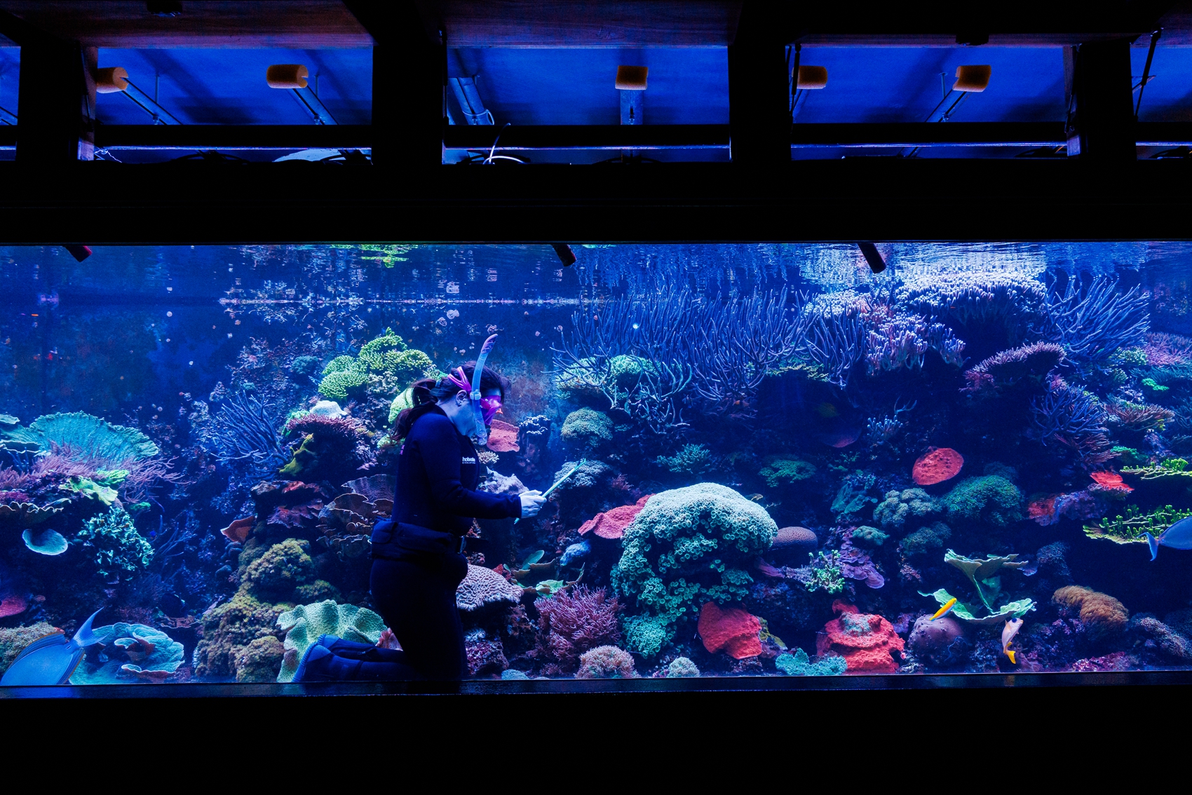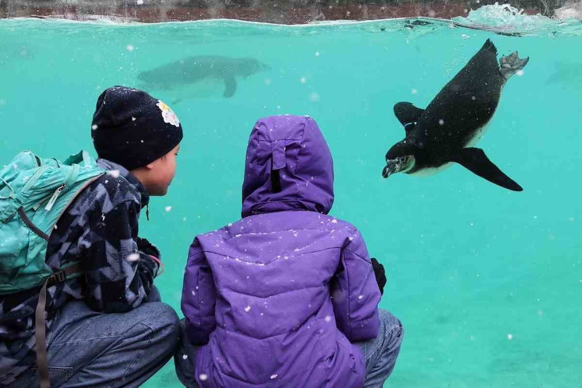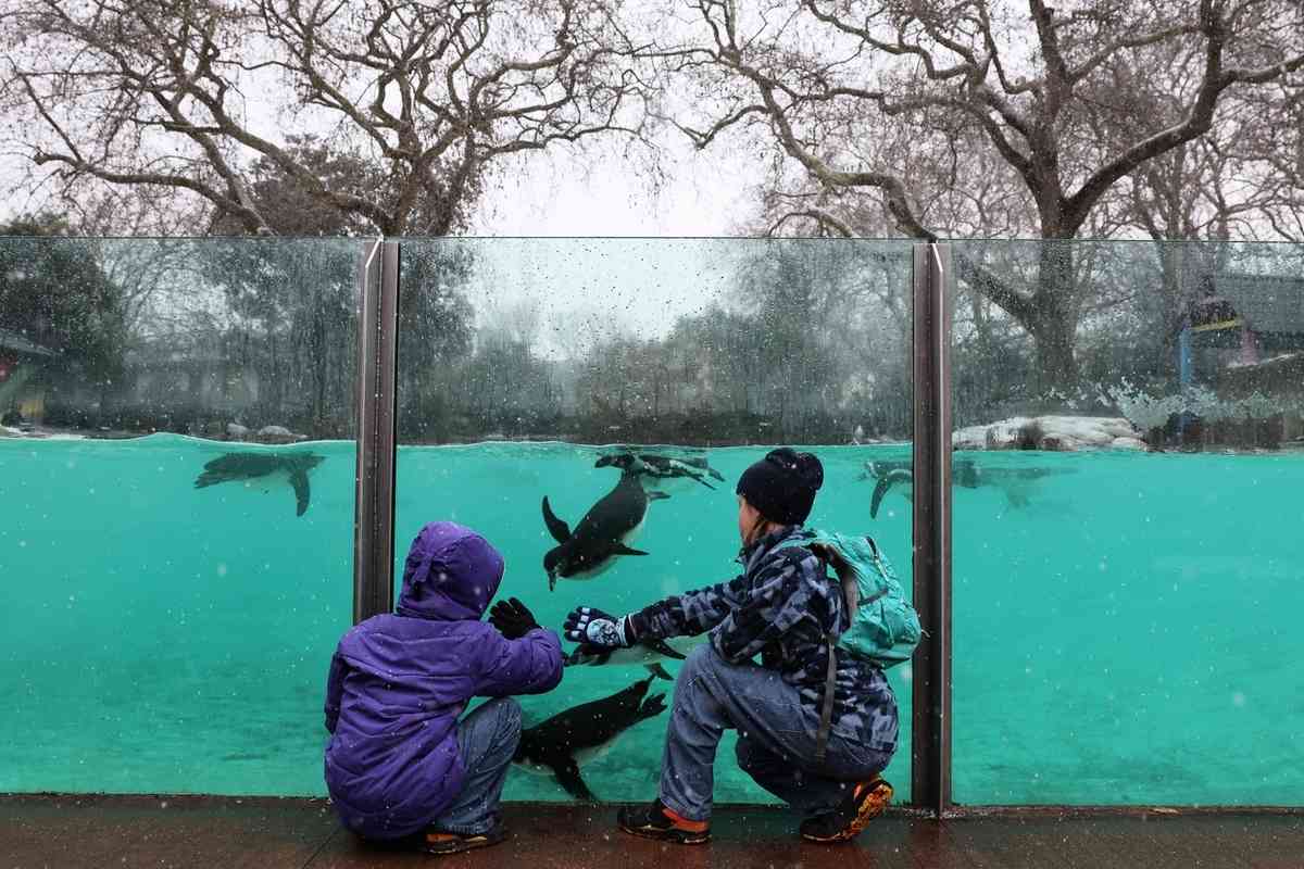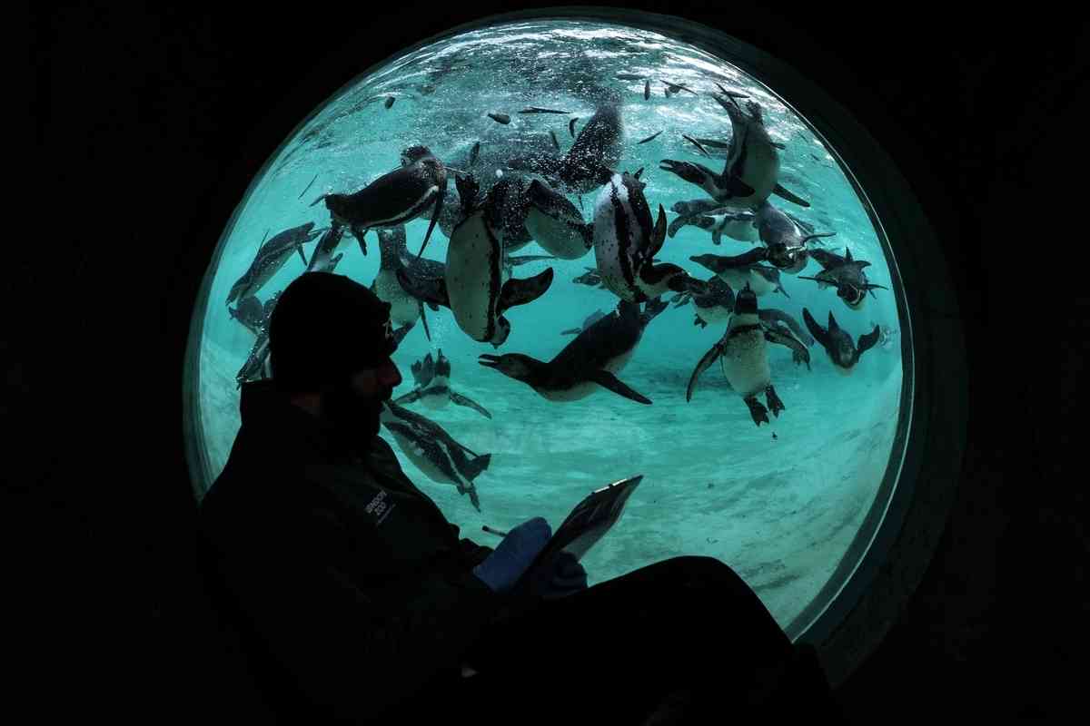 2026年1月6日,英國倫敦動物園開始對園內飼養的動物進行一年一度的大盤點。圖為飼養員傑伊‧菲爾蒂納(Jay Firtina)在水族箱外清點企鵝數量。(Adrian Dennis/AFP via Getty Images)