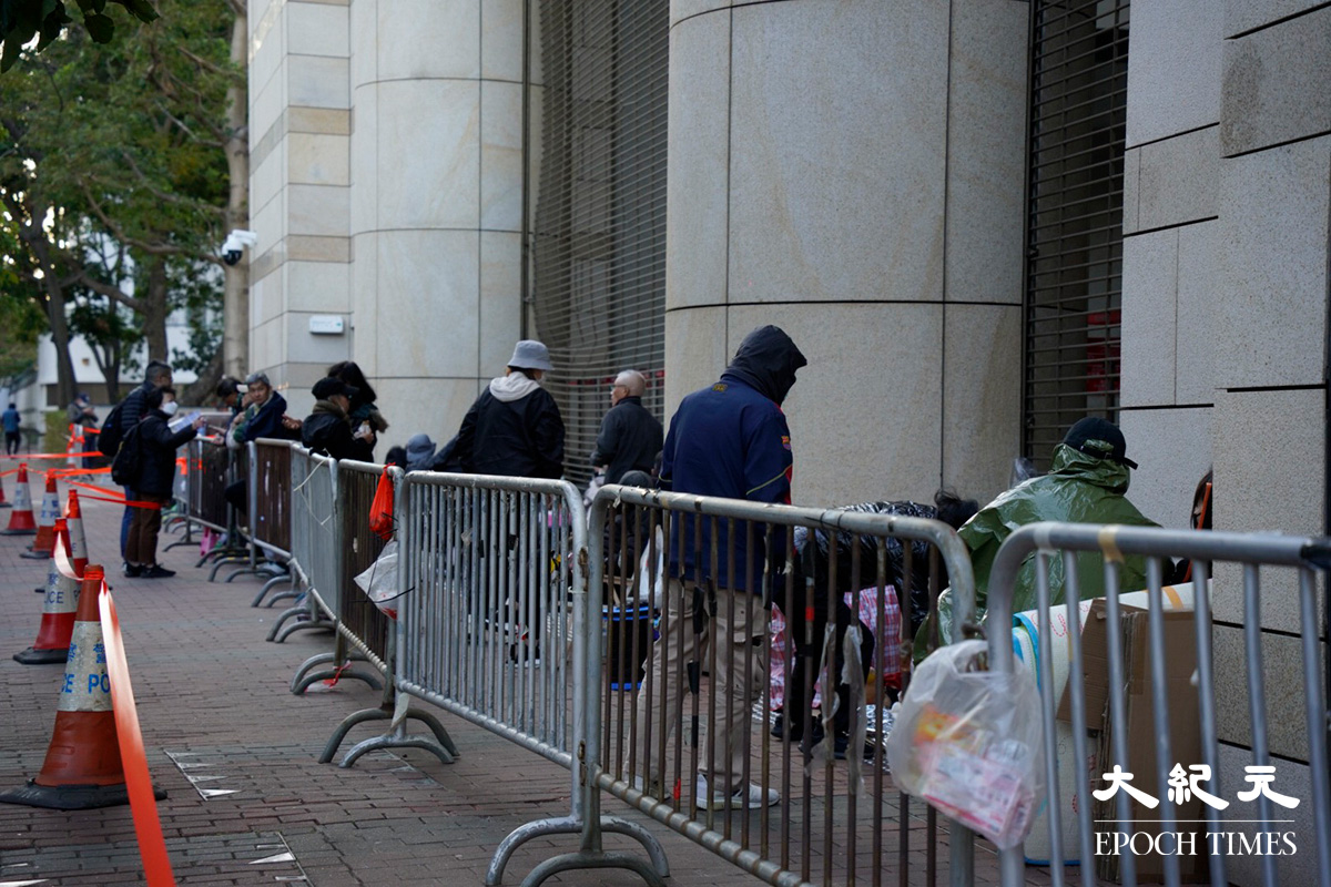 退休教師廖女士接受訪問時表示,從上周五開始在法院外排隊,已連續排隊3晚,希望能進入法庭向黎智英傳達支持訊息,讓黎知道外界並未忘記他。她透露有學生曾因社運入獄或已離開香港,形容那些學生面臨巨大壓力,難以在香港找到工作或謀生,導致「家破人亡」或流散各地。